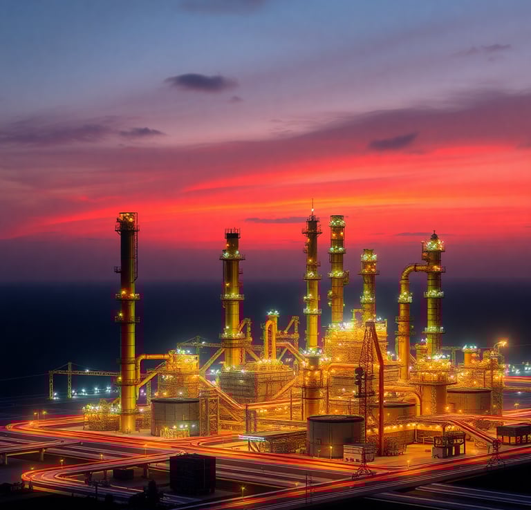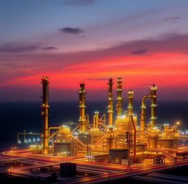 Collection of masterplan designs and construction consultations for oil and gas projects.